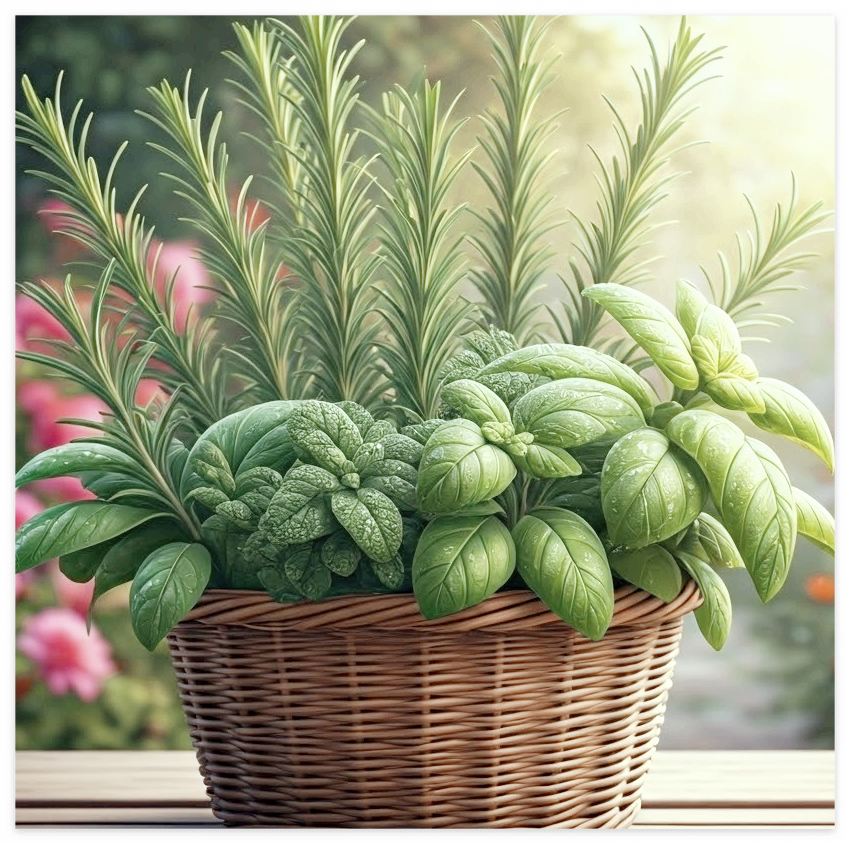 병충해에 강하고 키우기 쉬운 허브로, 향이 강해 요리뿐만 아니라 방향제 대용으로도 유용합니다. 로즈마리는 고기 요리나 감자 요리에 사용하면 훌륭한 풍미를 더할 수 있습니다.